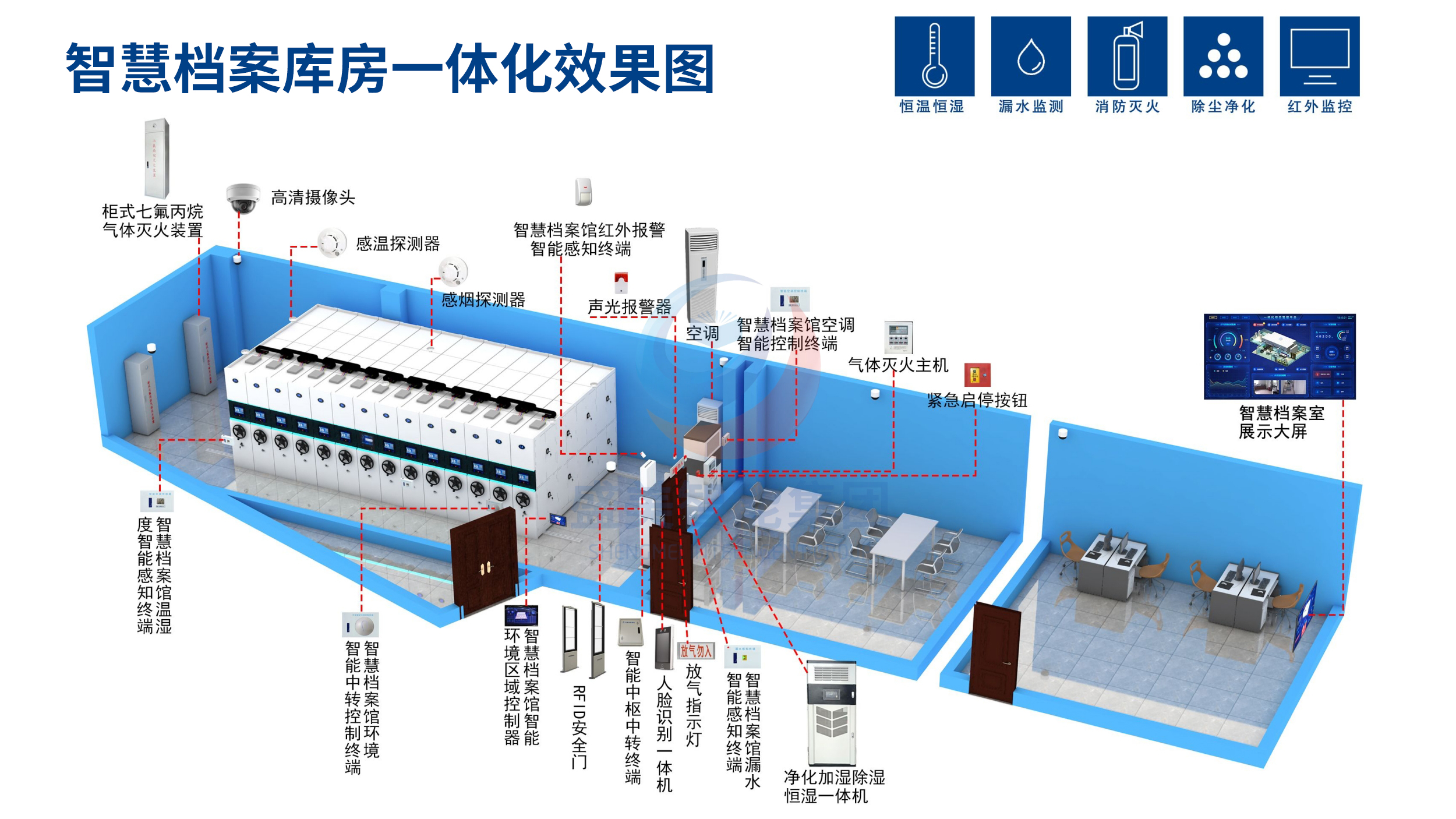 檔案室的地面、墻面和頂面可選擇具有防塵性能的材料進(jìn)行裝修和裝飾。